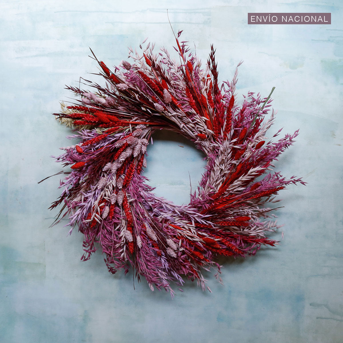 Corona de espigas preservadas rojo & rosa - Envío nacional