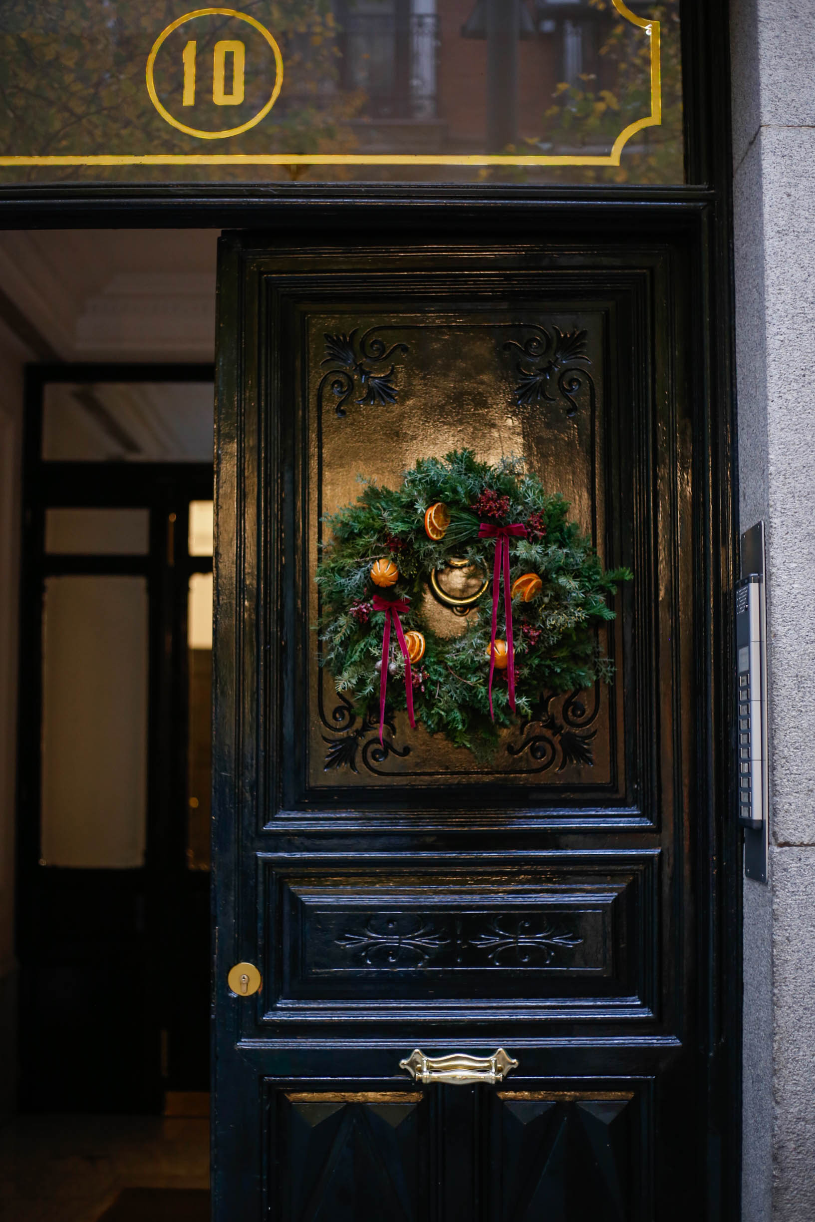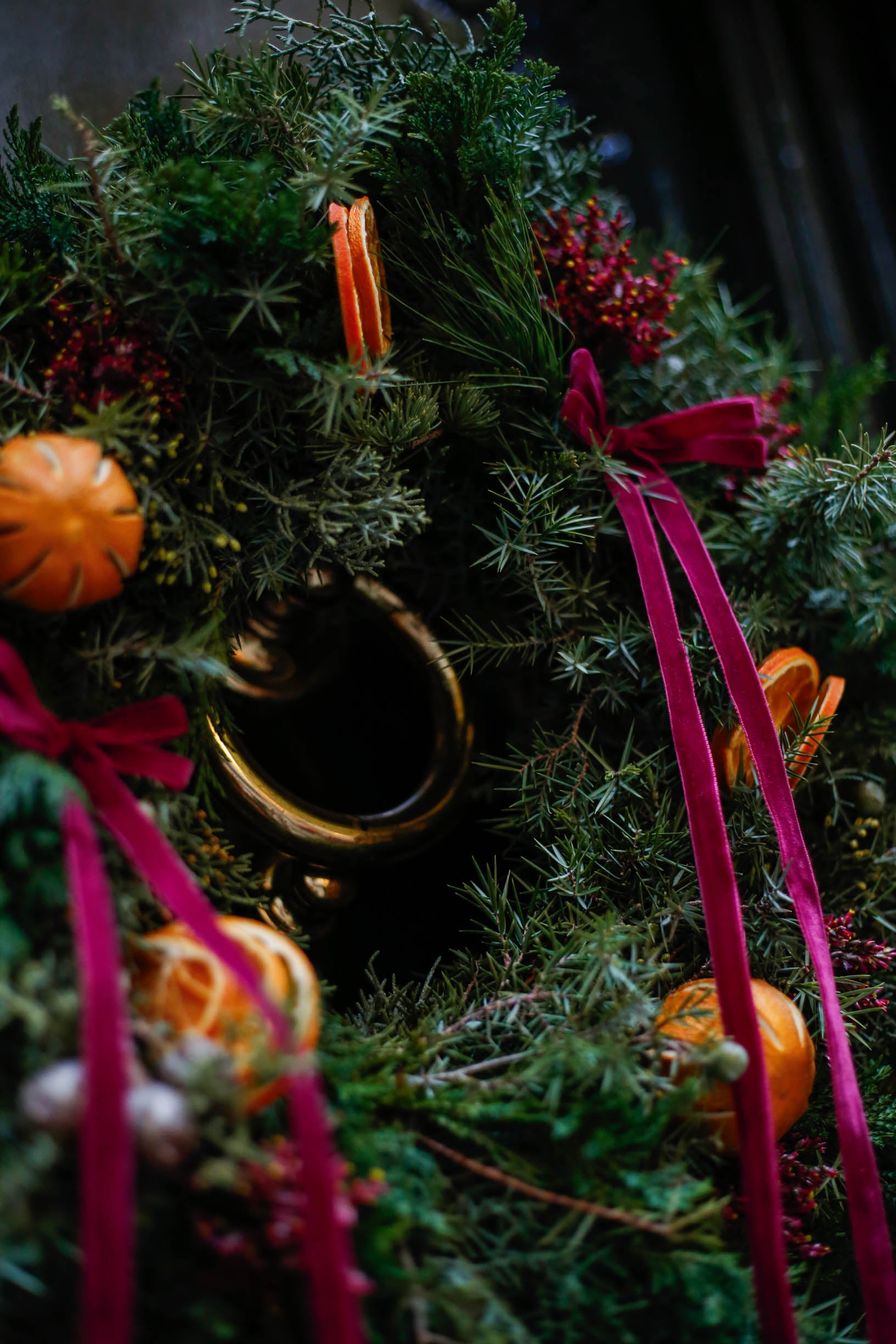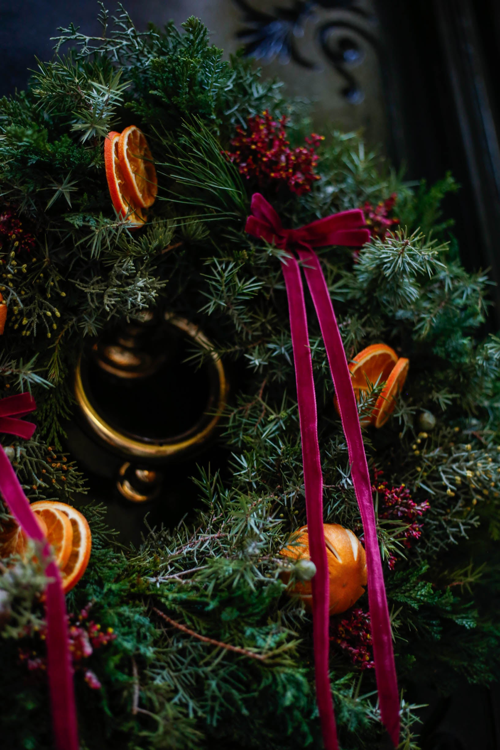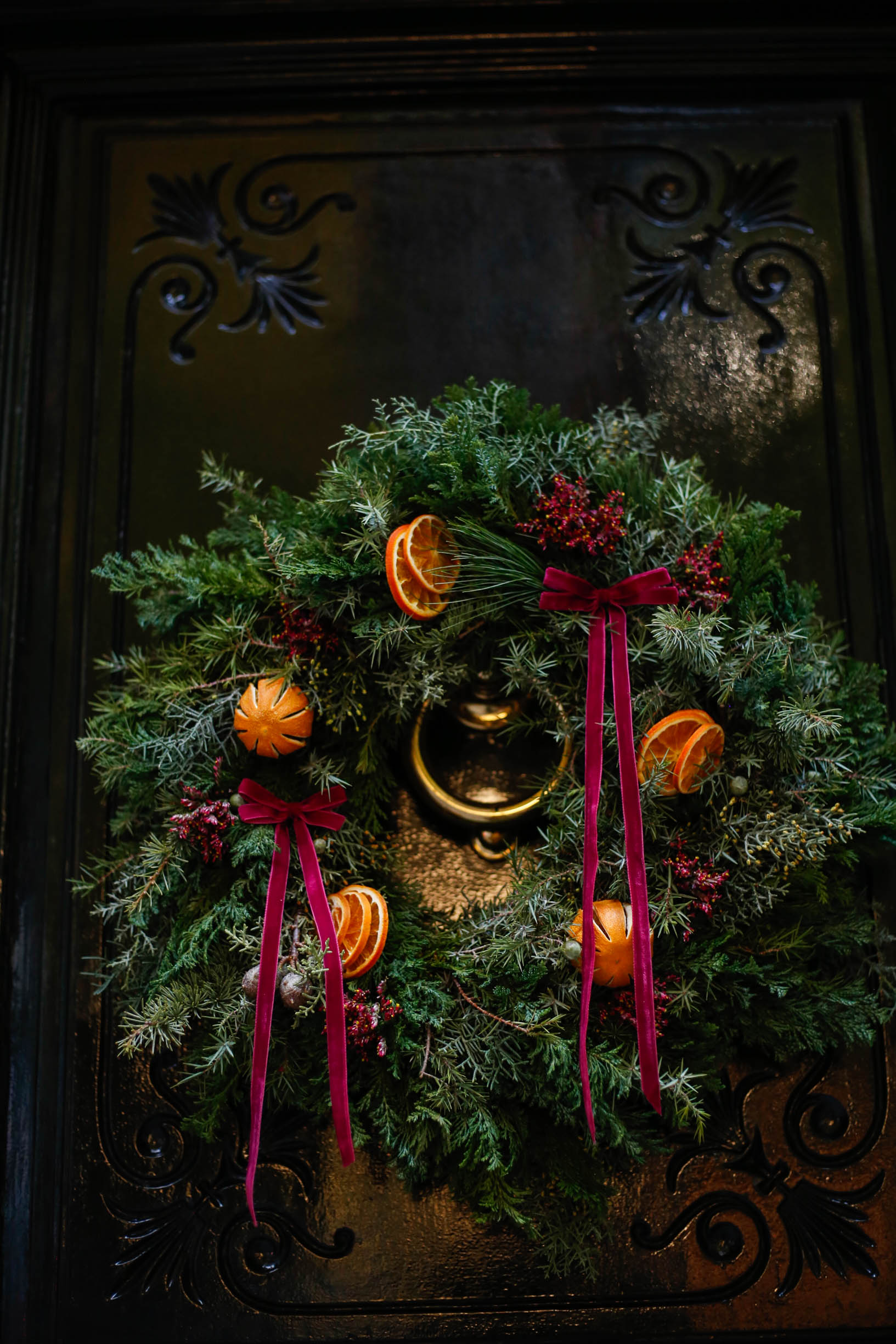 Corona de Navidad con lazos y naranjas