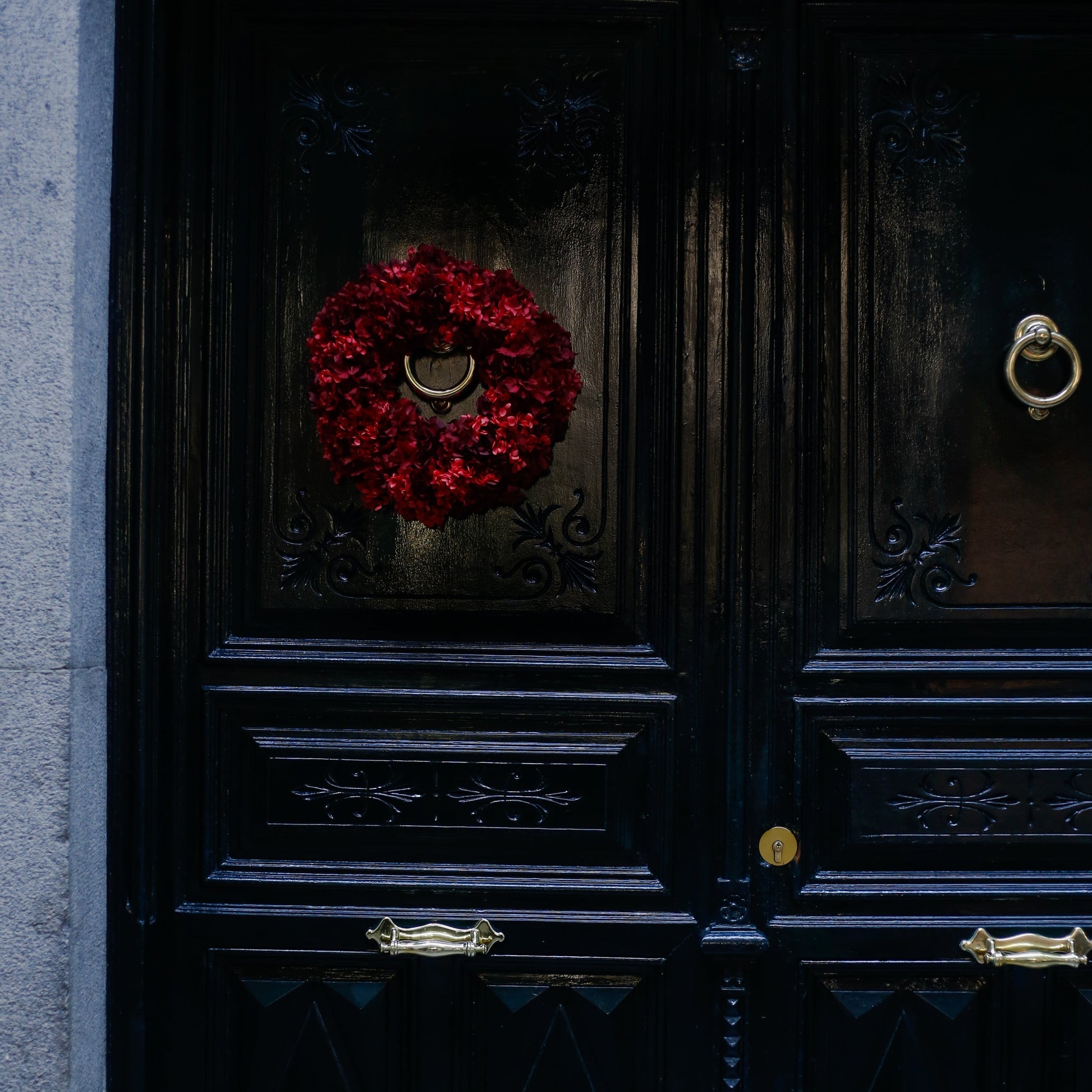 Corona de Navidad elaborada con hortensias preservadas. Cada flor conserva su belleza natural para acompañarte durante las cuatro semanas previas a la Navidad. Un detalle elegante y duradero para llenar tu hogar de luz y significado.