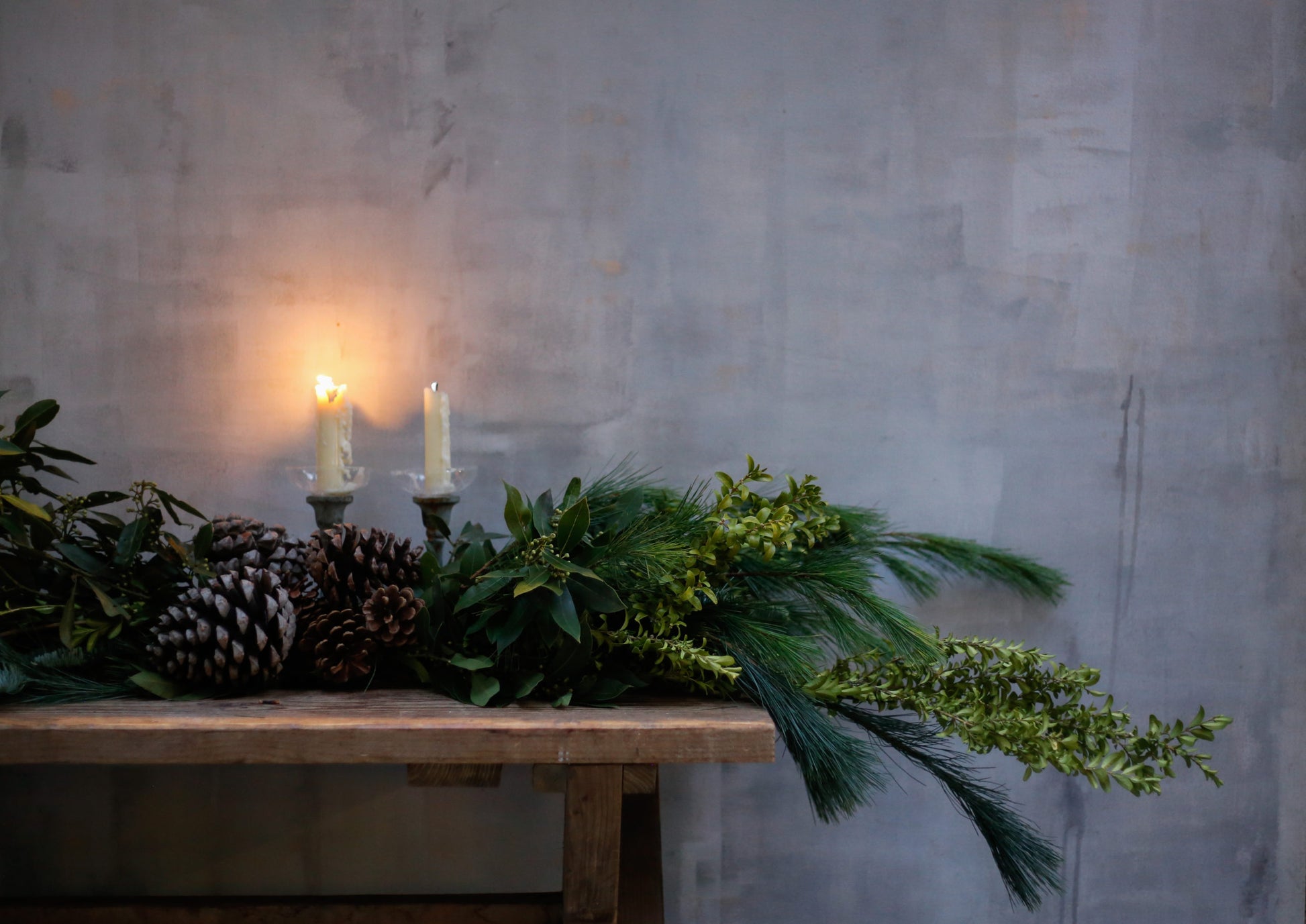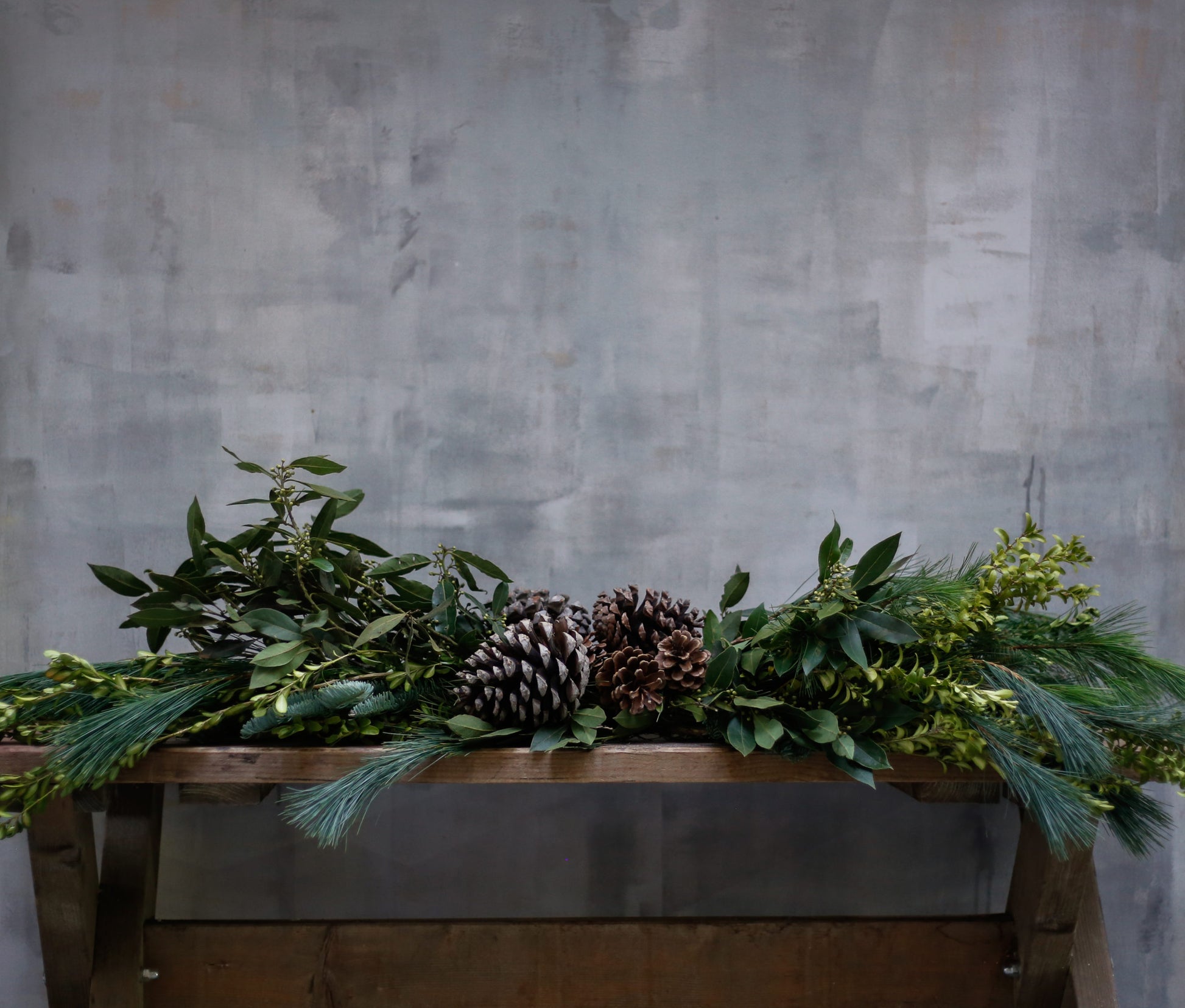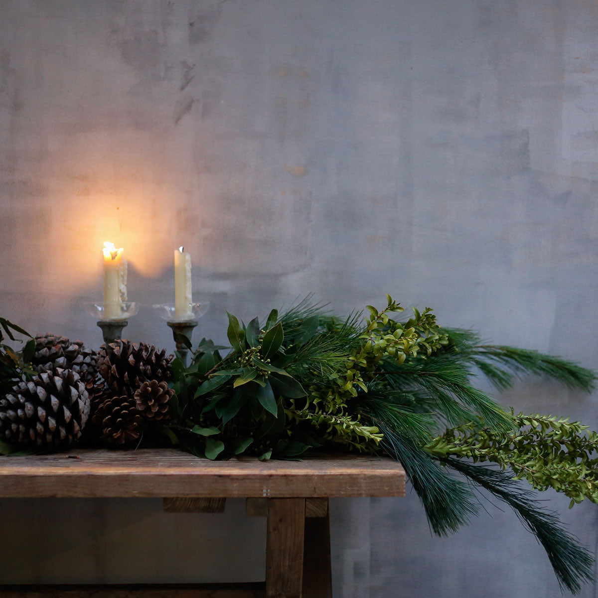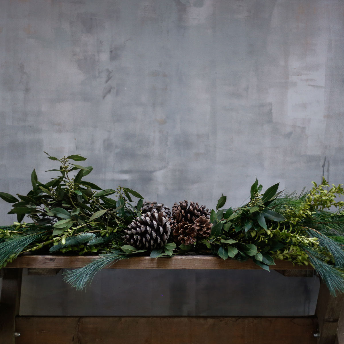 Guirnalda natural realizada con boj, pino, pinsapo laurel y piñas. Es ideal para decorar fácilmente tu salón, puertas y ventanas, para la chimenea o incluso para decorar la mesa combinándola con bolas y otros adornos. No incluye candelabros con velas.