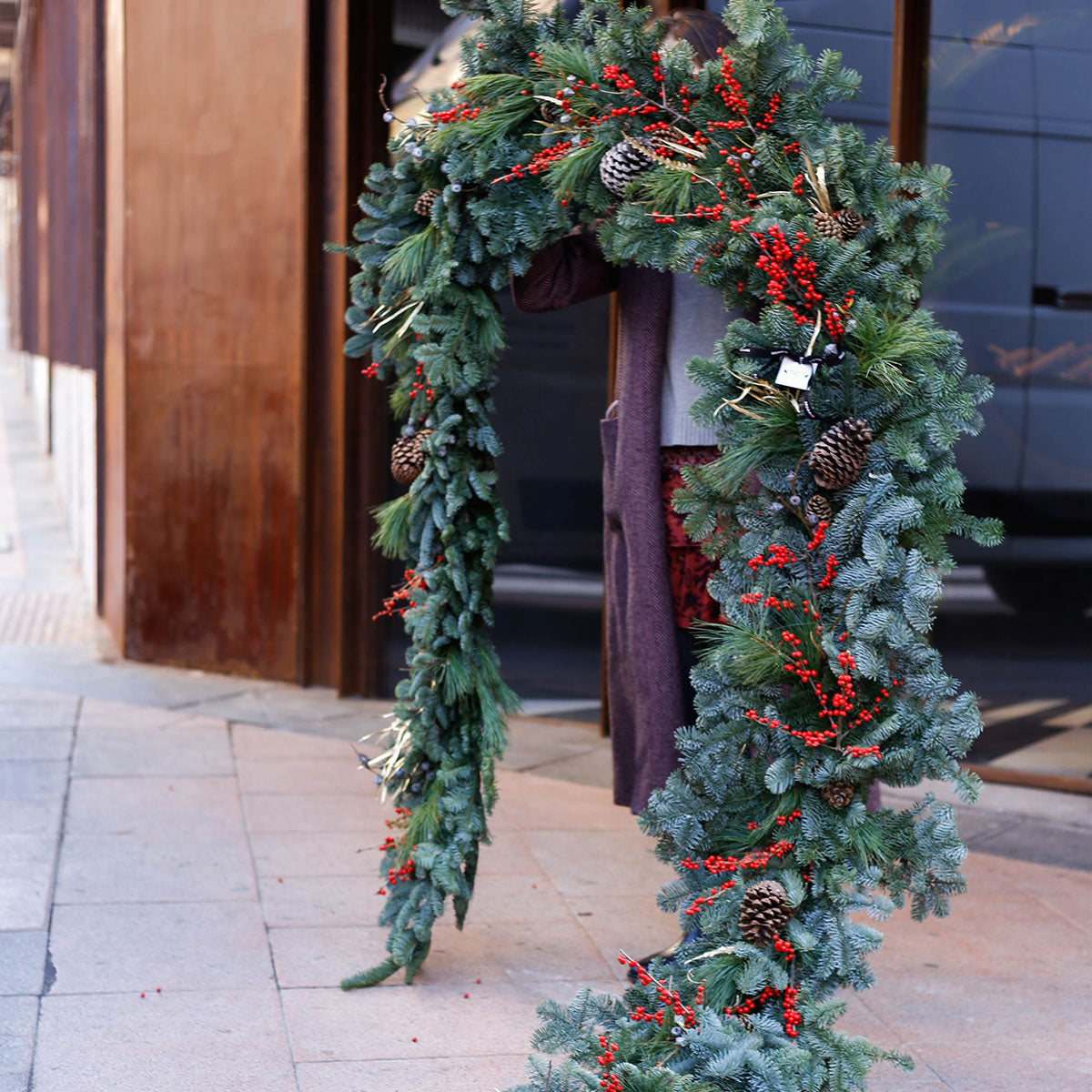 Guirnalda de Navidad natural estilo clásica, realizada con pino, pinsapo, íllex, piñas y otros elementos navideños. Elige la medida que prefieras. Es ideal para decorar fácilmente tu salón, puertas y ventanas, para la chimenea o incluso para decorar la mesa combinándola con bolas y otros adornos.