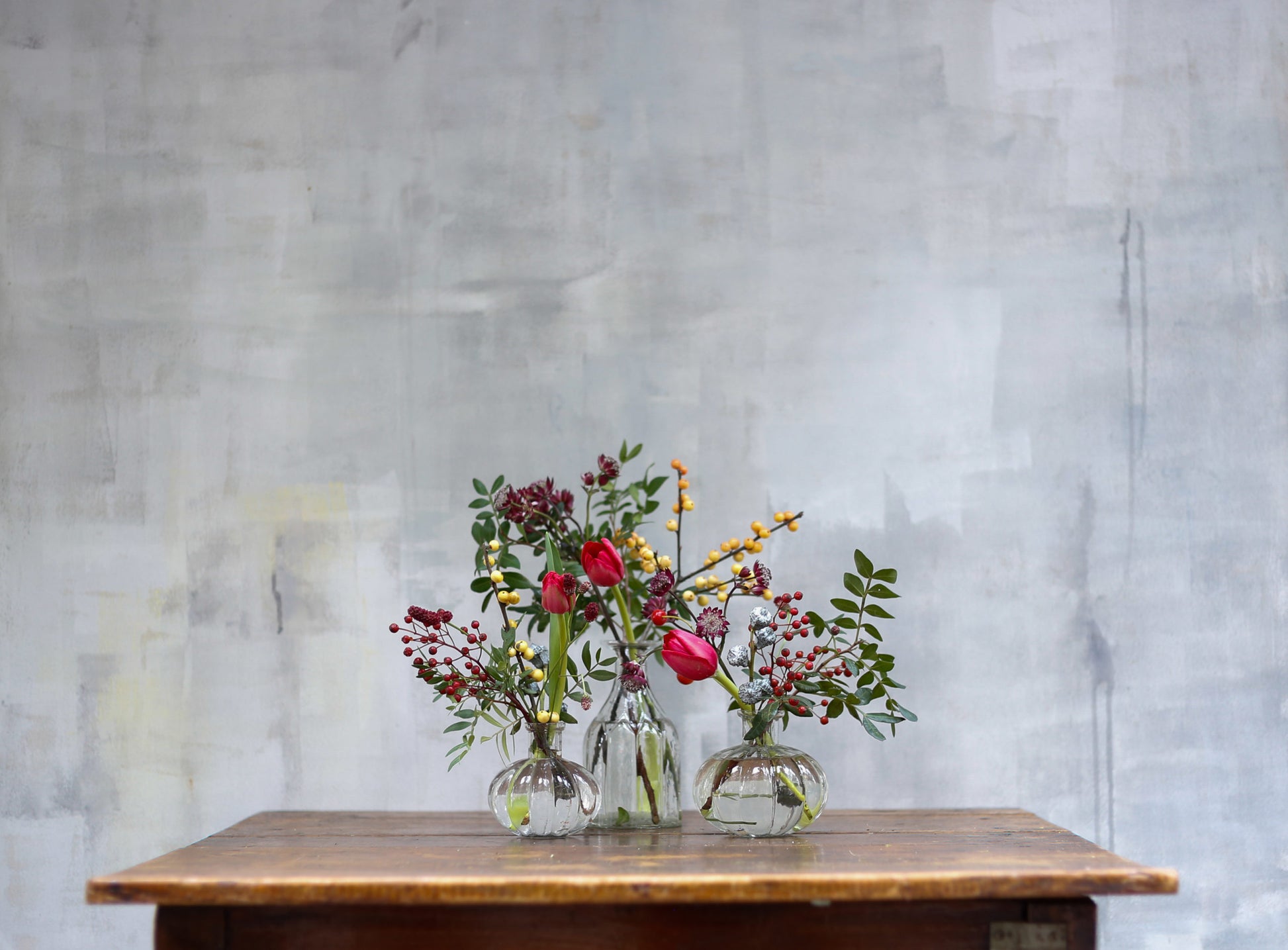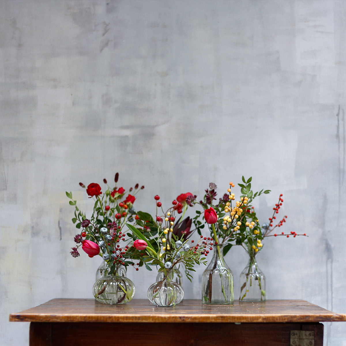 Set de mini jarrones con flores navideñas